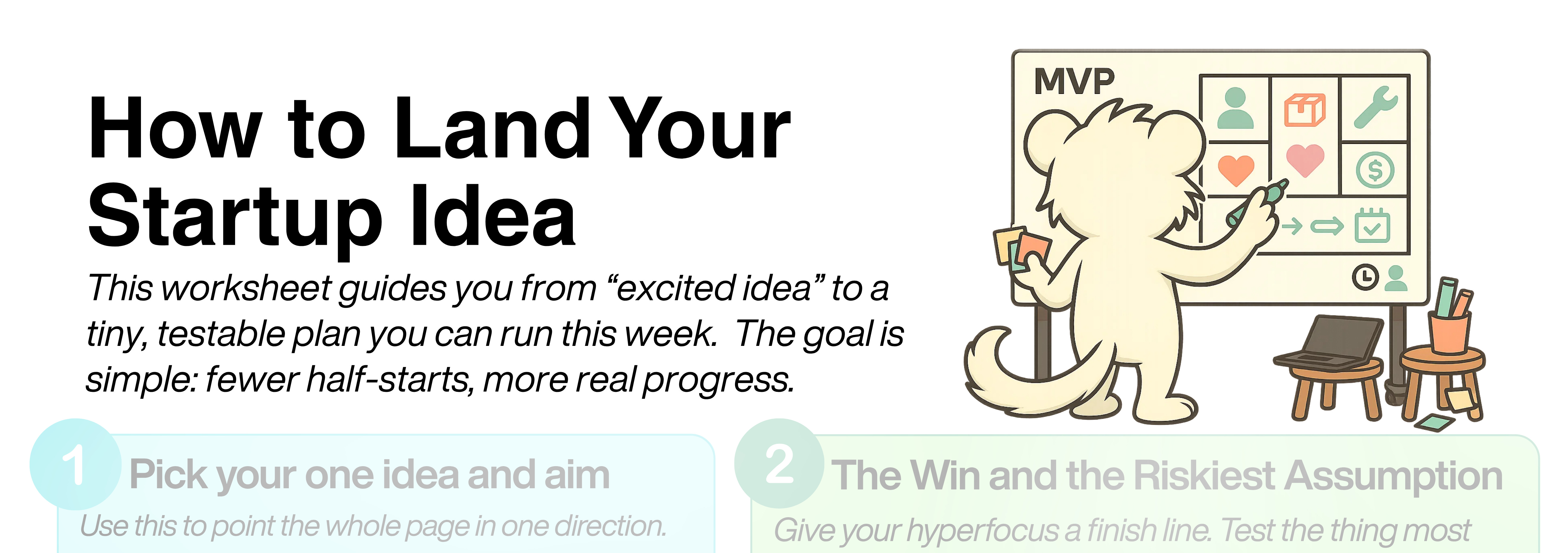 Turn one exciting idea into a tiny, testable plan. You will choose a main quest, define a clear win, map a 48‑hour MVP, set a short sprint, and add accountability plus dopamine cues. Perfect if you want to go from idea to actionable plan.