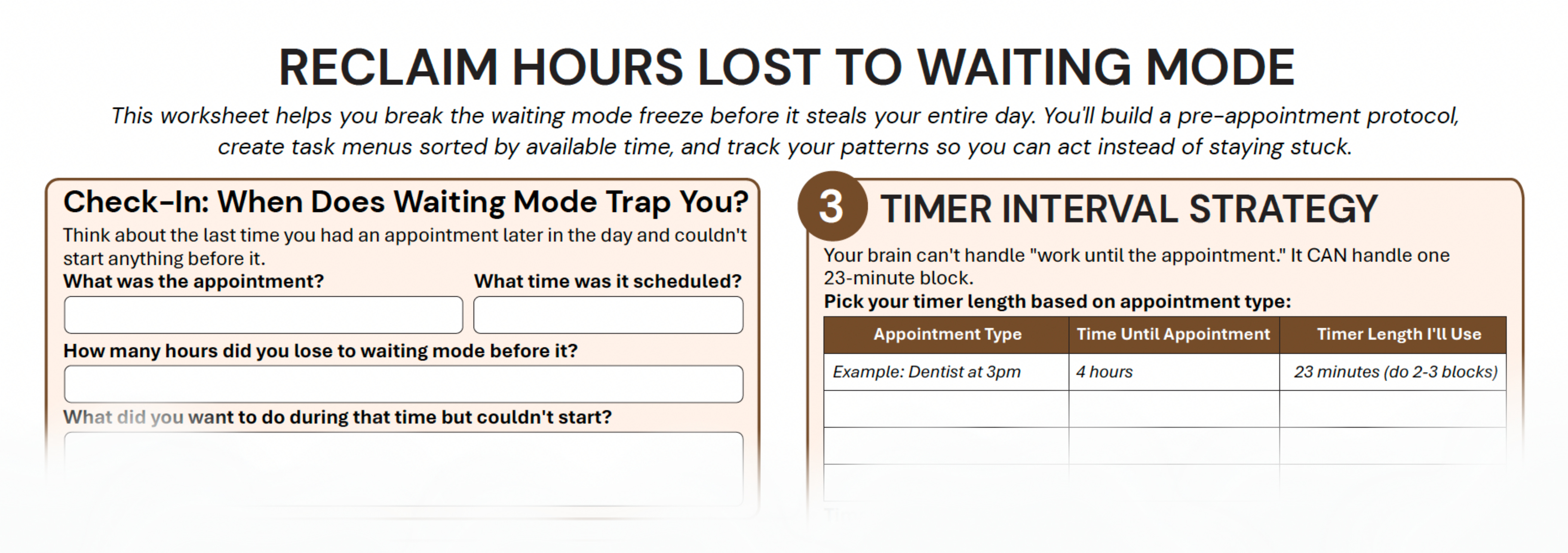 Dive into our ‘Reclaim Hours Lost to Waiting Mode’ worksheet