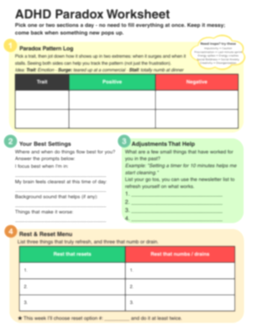 At the end of the day, ADHD isn’t about choosing between two extremes, it’s about learning to live with both. The brain isn’t broken or inconsistent for swinging between distractibility and hyper-focus, or emotional shutdown and deep empathy. It’s working with a system that struggles to regulate. Once that’s understood, the paradoxes feel less confusing. They’re not random. They’re patterns - sometimes frustrating and sometimes surprisingly useful.