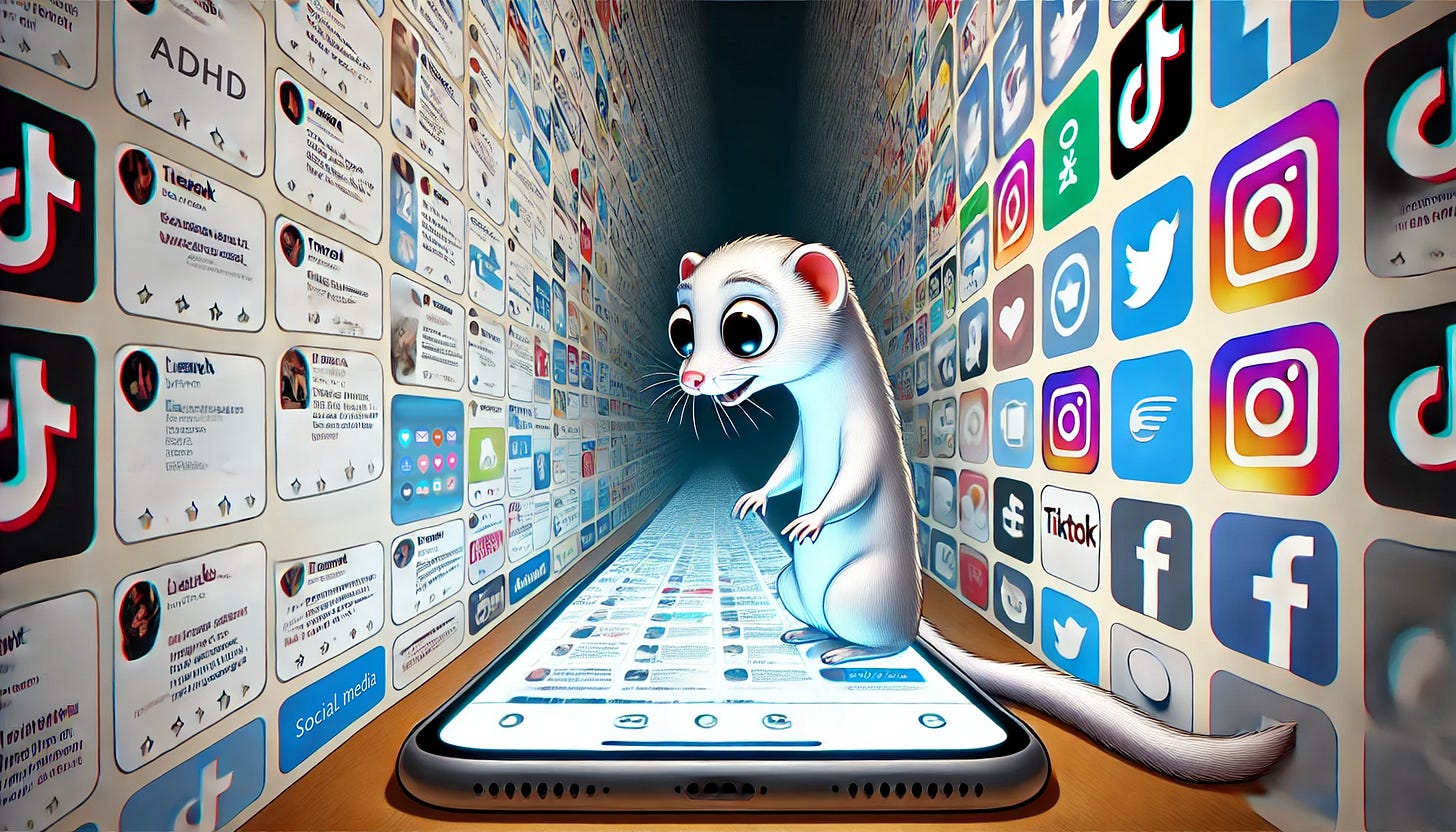Hey there, ADHD Weasel fam! Ever fallen down a TikTok rabbit hole only to realize three hours later you’ve memorized 17 cake-decorating hacks but forgot to eat lunch? Welcome to the scroll-er coaster of ADHD and social media - where every notification is a shiny acorn begging for your attention. Let’s unpack why our brains treat Instagram like a dopamine ‘piñata’ and how to reclaim your time (and sanity).